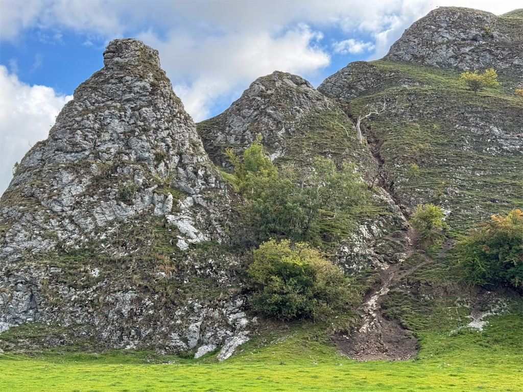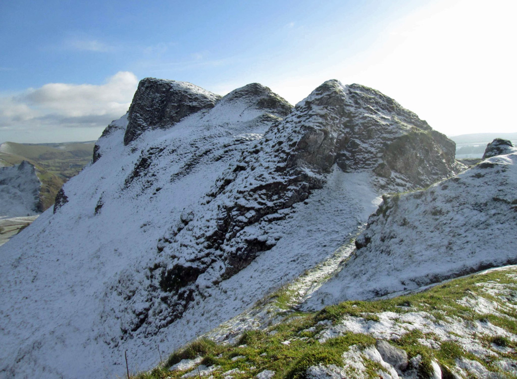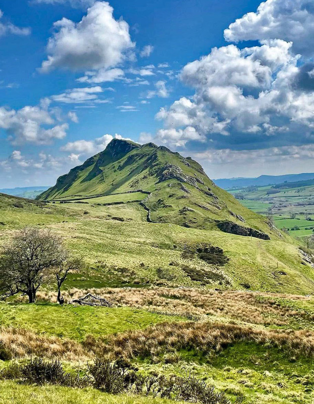 There are few hills worthy of the name ‘peak’ in the Peak District, with two very distinct exceptions. Geographically secreted in the upper Dove Valley, Chrome Hill and Parkhouse Hill are spectacular craggy etchings on the skyline of the limestone landscape.