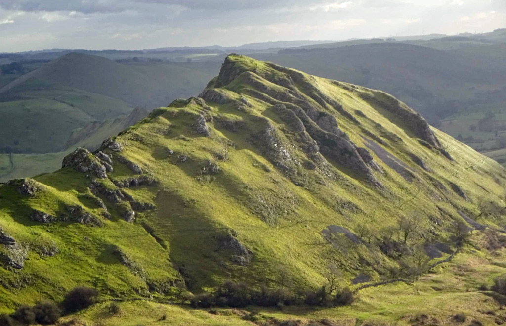 Parkhouse Hill thrusts defiantly from the upper Dove Valley, as seen from Chrome Hill