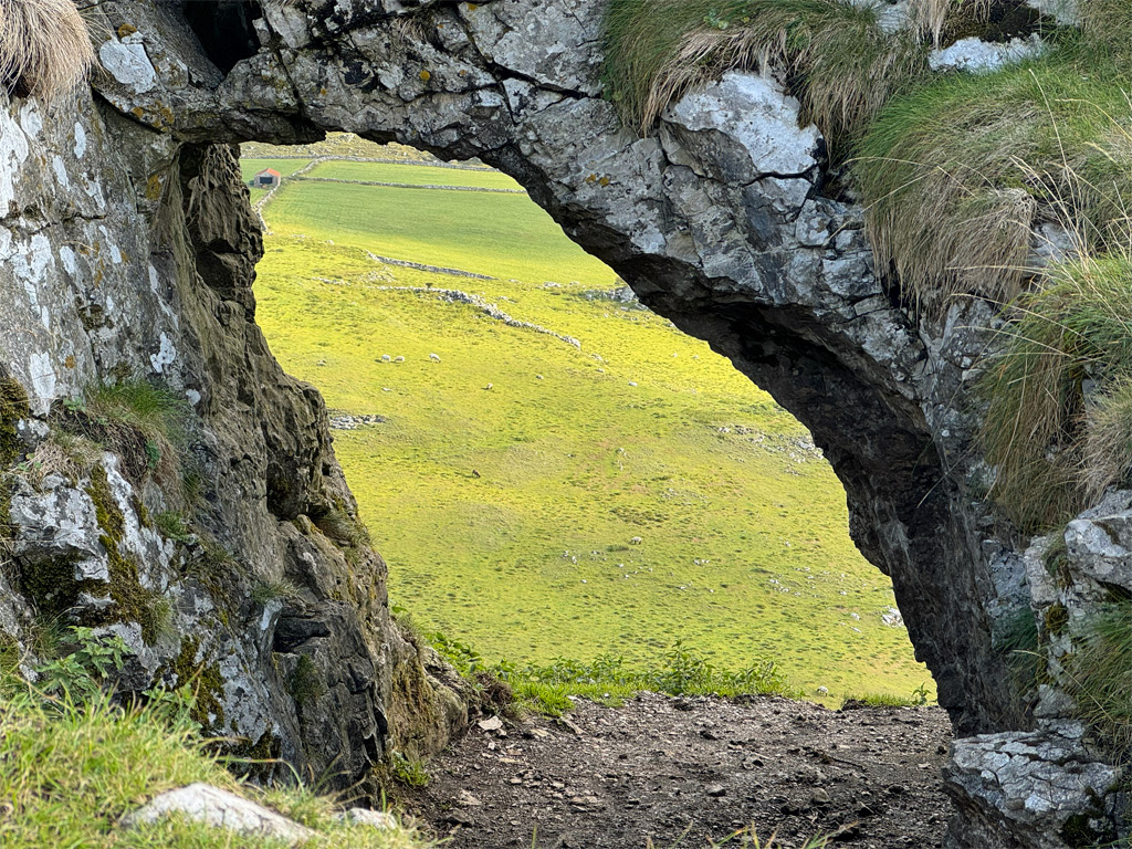 A curious window near the summit of Chrome Hill. The lack of grass testifies to its frequent occupation by sheltering sheep