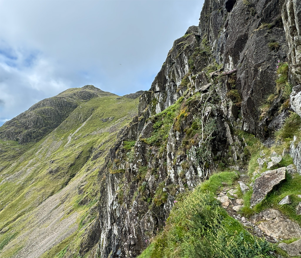 Halfway up Jack’s Rake looking to Harrison Stickle. This is one of the more exposed sections
