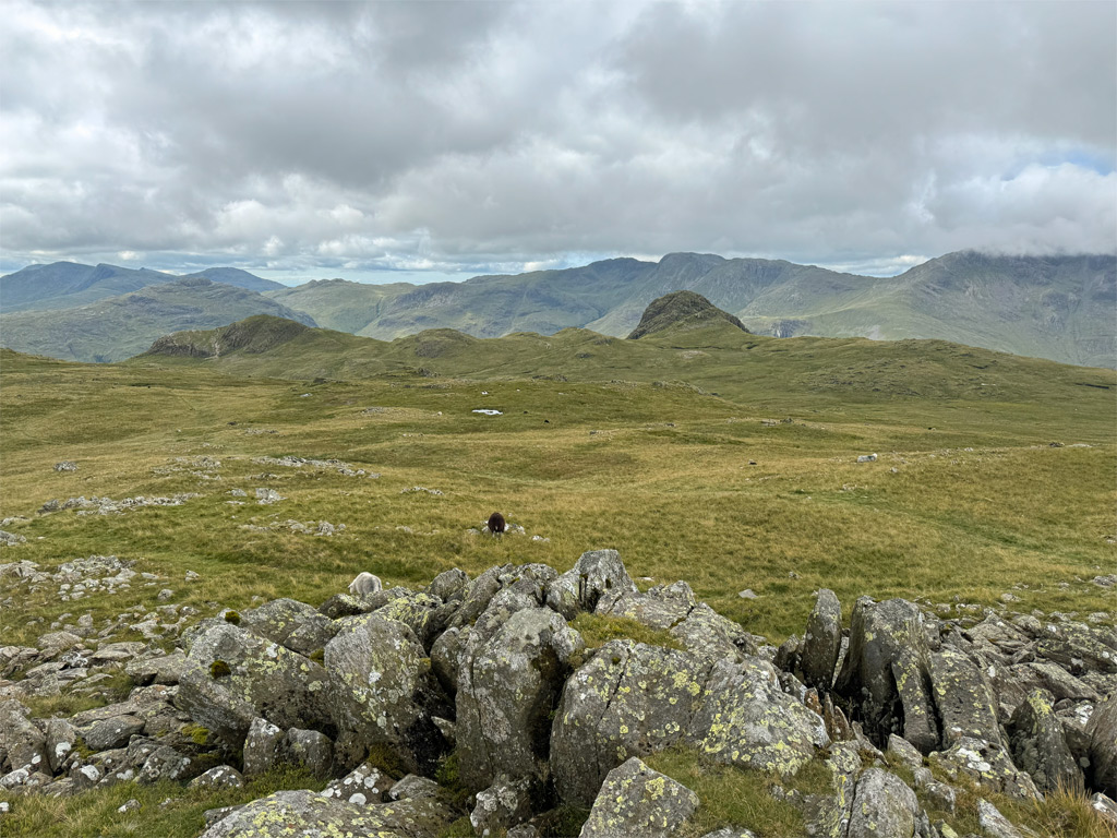 The pap of Pike o’ Stickle remains recognisable from the undulating moorland to the north. The Herdwick, content with its lot, fails to see why humans might denigrate its heft (home turf)
