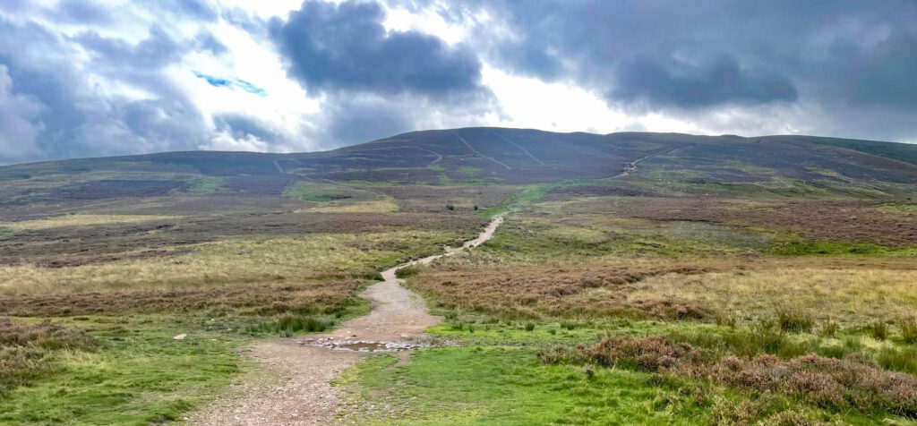 Although commonly thought of a single hill, Tinto comprises five tops, four spanning an east to west ridgeline with an offshoot to the north. It is from the north that the usual ascent is made, being the least steep and with the most well-trodden path, although other ascents are possible. The south side presents the sharpest angle with the sketchy path from Whiston Lodge taking agonizing zig zigs as it climbs the nose of Pap Craig, one of the few places where the bedrock of Tinto is naturally exposed. This is the shortest route to the summit. An approach along the ridge can be made from the west at Howgate, which passes pleasingly over Lochlyoch Hill; or alternatively from Cleugh Reservoir climbing the spurs either side of Cleugh Burn. Cleugh means ravine and well describes several features of this name, being deeply incised glacial meltwater channels cleaving the lower slopes of the hill.