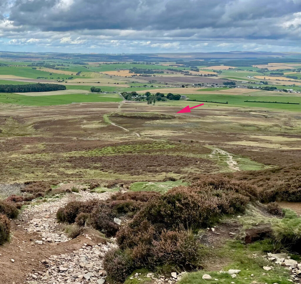 Fallburn Hillfort (marked by red arrow) is a short way above the car park